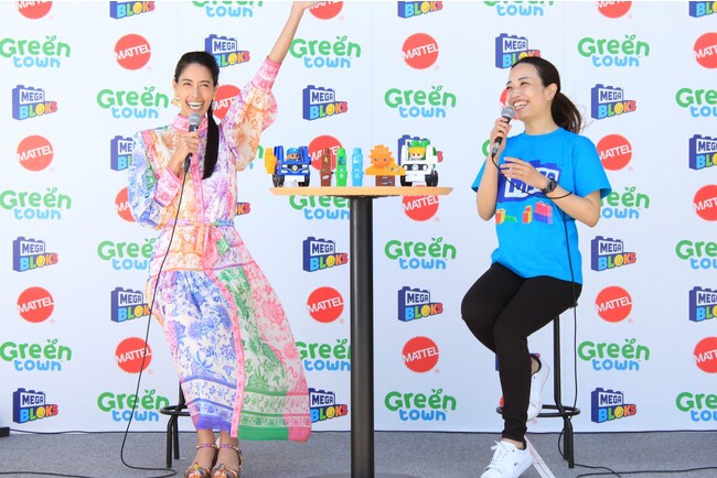 その後トークショーでは、「メガブロック グリーンタウン」を応援するタレント・モデルの森泉さんが登壇し、4歳のお子様と本製品を実際に遊んだ感想を「かなりハマっています。子供と一緒に親もハマっています。ブロックを重ねていく感触も癖になっていて、積み上げるのが楽しいみたいでずっと遊んでいます。色もすごくきれいですね。」とコメントしました。
