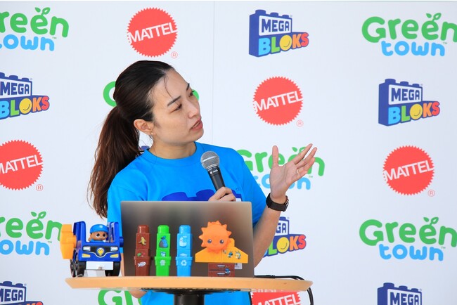 マテル・インターナショナル株式会社(本社:東京都千代田区、代表取締役社長:マーク・パンサール)は、玩具で世界初※1のカーボンニュートラル※2製品である、「メガブロック グリーンタウン」の新製品発表会を、タレント・モデルの森泉さんをゲストに迎え、東北自動車道 蓮田サービスエリア(上り線)Pasar蓮田入口横 特設会場で本日(5月2日)に行いました。
