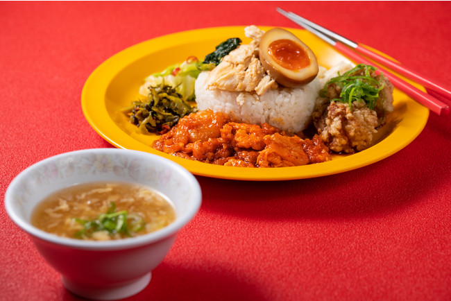 エビチリ、鶏肉飯、油淋鶏、副菜、スープ付き