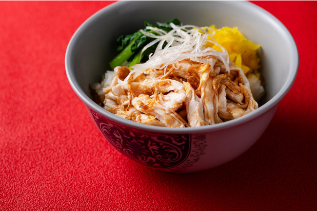 低温調理で柔らかくさっぱりとした食感の鶏肉に揚赤葱や特製の台湾甘タレ醤油をかけた台湾の国民食。有楽町限定商品