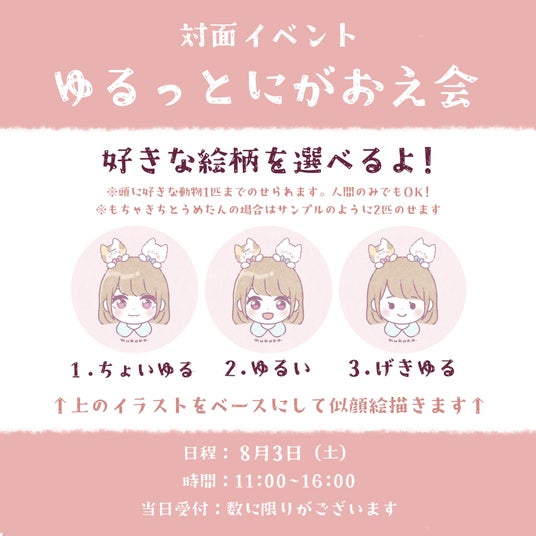 「ぬここ」ゆるっと似顔絵会開催日時:8月3日(土)11:00~16:00