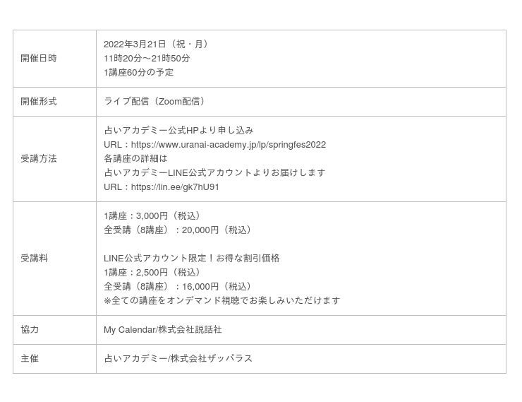 URL:https://www.uranai-academy.jp/lp/springfes2022