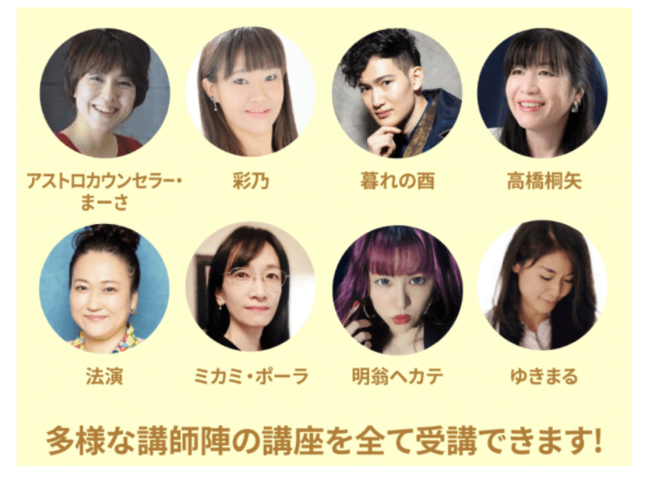 メディアやSNSで活躍中の人気占い師が講師をつとめ、本格的でありながらわかりやすい内容です。オープニングでは、業界の第一線で活躍する鏡リュウジといけだ笑みによる「みんなセルフ占いから始まった」も予定しております。
