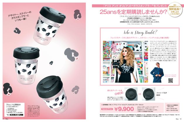 ■ 『25ans』1月号の定期購読プレゼントは「アリス アンド オリビア」オリジナルのガラスタンブラー