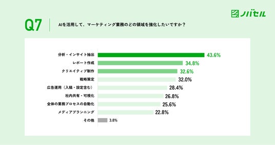 7.今後AIで強化したい領域は「分析・インサイト抽出」(43.6%)