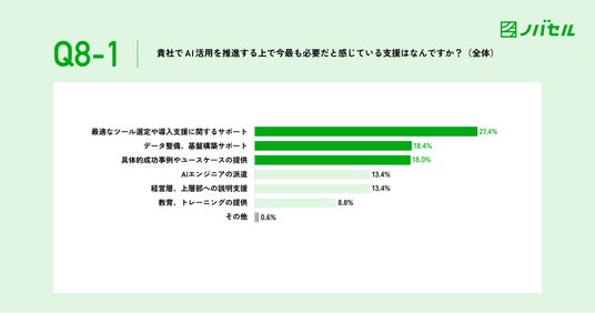 8.AI活用を推進する上で今最も必要だと感じている支援は、導入サポートとデータ整備、基盤構築サポート