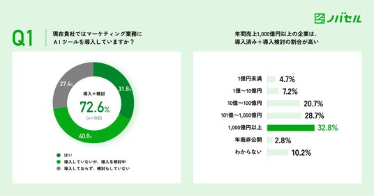 ソフトウェアとプロフェッショナル人材の力でマーケティングの民主化を目指すノバセル株式会社(本社:東京都港区、代表取締役社長:田部正樹、以下ノバセル)は、全国の事業会社でマーケティング業務に従事する会社員500名を対象に、「マーケティング業務における課題と、AI活用に関する実態調査」を実施しました。(調査期間:2025年6月20日~6月24日)