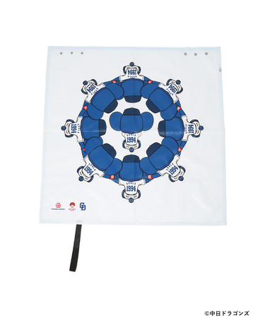 自動車のエアバッグとして搭載されるはずだった未使用の生地を使ったマルチラップ。撥水性のある生地のためレジャーシートとして使用したり、急に雨が降った際に被せたり、スナップ部分を使って身体に巻き付けることも可能です。円陣を組んでいるドアラは、どんな時でも皆で力を合わせようという意味を込めて描き下ろしました。レジャーシーンだけではなく、非常時にも活用したいアイテムです。
