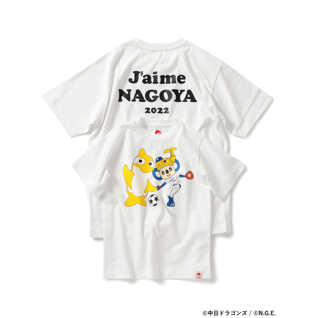名古屋を代表する大人気キャラクターの2人が、金鯱姿のスペシャル衣装を身にまとい、手を取り合って「大名古屋展2022」を盛り上げます。バックプリントには、名古屋市とランス市が姉妹都市提携5周年である事を記念して、フランス語で「なごやだいすき」と入れています。