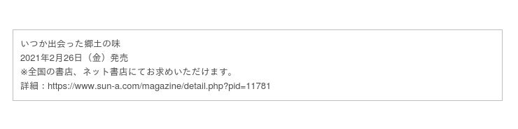 株式会社三栄(本社所在地:東京都新宿区、代表取締役社長:星野邦久)は、2021年2月26日に『いつか出会った郷土の味』を発売いたしました。