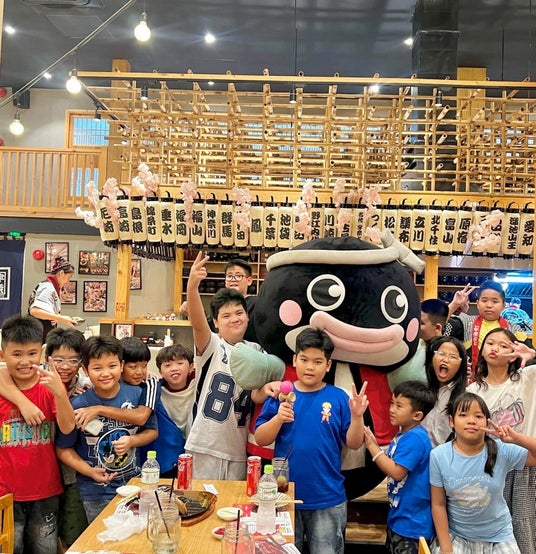 和食アンバサダーとして活動を海外でも広げる中、ベトナムにある宇奈とと店舗ではたくさんのお子様たちが写真撮影に行列を作るほどの人気者に!