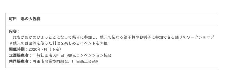 本年5月から7月に第一回募集を行い3件を採択。同9月~11月まで第二回募集を行い、採択した7件の事業を決定、発表した。