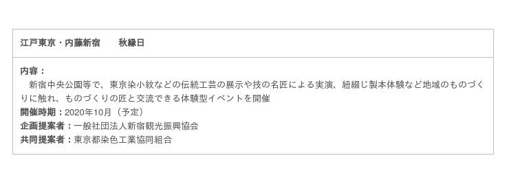 今年5月に東京都から発表された、2020年度に開催する体験型観光イベントを支援する「ウェルカムTokyoイベント」事業。第二回募集の採択イベントが決定した。