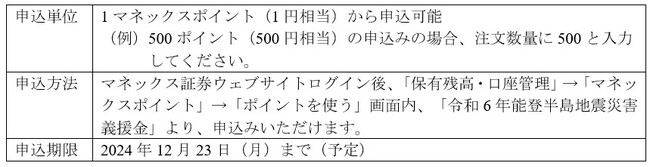 ■マネックスポイントからの「令和6年能登半島地震災害義援金」受付手順