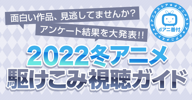 国内最大級(※)アニメ見放題サイト「dアニメストア」( https://anime.dmkt-sp.jp/ )では、今期放送中アニメの振り返りアンケートを実施し、5,100人以上の回答から選ばれた『2022冬アニメ 部門別ランキング』の結果を発表いたしました。(投票期間:2/18(金)~2/25(金))