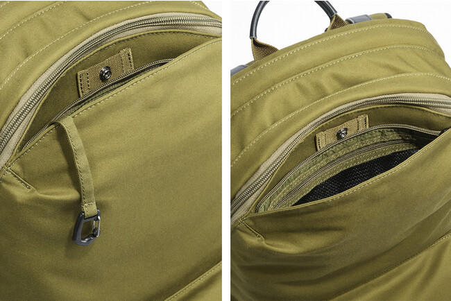 デイパックのオーセンティックなデザインは崩さず、外から見えにくい部分にセキュリティ性を考慮したポケットやPC収納部を配し、使い心地を向上させるとともに、背負い心地にもこだわっています。