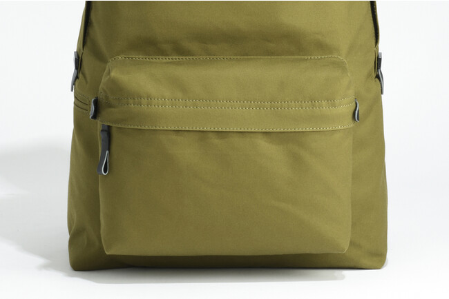立体的なアイテムも収納できる、大きなマチ付きフロントポケット。