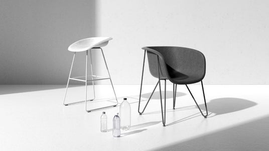 Refeltは、リサイクルマテリアルを原料に心地良い質感と上質なデザインで空間を演出するフェルトチェアです。背座シェルには使用済みのペットボトルを回収、再資源化した繊維を約50%含むポリエステルフェルトを採用し、従来のプラスチックモールドによるチェアパーツと比べて製造エネルギーとCO2排出量を抑えています。“Refelt”という製品名には、これからの家具づくりにおいてサステナビリティの高いリサイクル”Felt”を高いデザイン性と掛け合わせることで、循環社会に貢献していきたいという想いを込めました。
