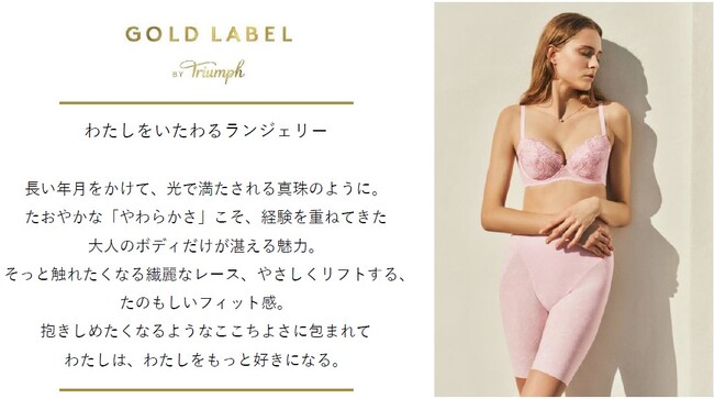 女性たちのありのままに寄り添うメッセージ「It’s Personal ~きれいごとより、私ごと。~」を掲げるトリンプ・インターナショナル・ジャパン株式会社(本社:東京都中央区築地5-6-4、代表取締役社長:ヴァンサン・ネリアス)が展開する「GOLD LABEL BY Triumph (ゴールドレーベル バイ トリンプ)」が、装いも新たに新登場。3月6日(水)より発売します。