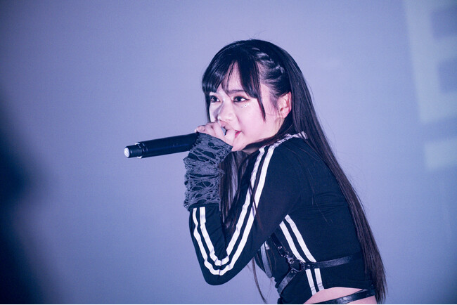 続いて、彼女たちの始まりの合図でもあるダンスナンバー『Girls In』でAi役の谷真理佳も登場し、1stシングル『NDA』を披露。曲に合わせて手を振り上げる観客に乗せられるように、Bellemuleも序盤からフルスロットルのパフォーマンスで応えます。さらに2ndシングル『Who am I』でも、自信溢れるパワフルなダンスで会場の熱量を引き上げました。