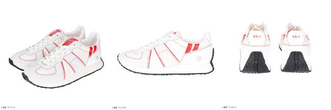 『機動戦士ガンダムUC』より、ユニコーンガンダムをイメージしたホワイトを基調としたデザインで、ステッチやライン使いでサイコフレームをイメージしたレッドの配色がアクセントとなっており、履きやすいアイテムです。ヒールのサイド部分ビスト財団の刻印とヒールのバック部分に型式番号を配置。どんなスタイルにも合わせやすいホワイトのスニーカーです。