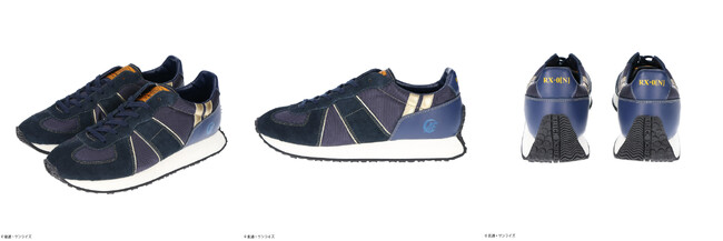『機動戦士ガンダムUC』より、バンシィ・ノルンをイメージしたデザイン。バンシィ・ノルンをイメージした濃紺をベースにステッチやライン使いでサイコフレームを表現。ライン使いにゴールドを採用しているが、濃紺との相性が良く派手になりすぎないデザインです。ヒールのサイド部分にはアナハイムエレクトロニクスの刻印とヒールのバック部分に型式番号を配置。落ち着いたカラーでコーディネートし易いアイテムです。
