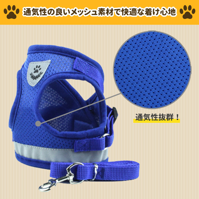 犬 猫 ハーネス メッシュ リード 脱げない 小型犬 中型犬 大型犬 超小型犬 ペット 用品 胴輪 散歩 通気性 ハーネスベルト 反射板付き ドッグ キャット 涼しい おしゃれ【gi-PR-003】