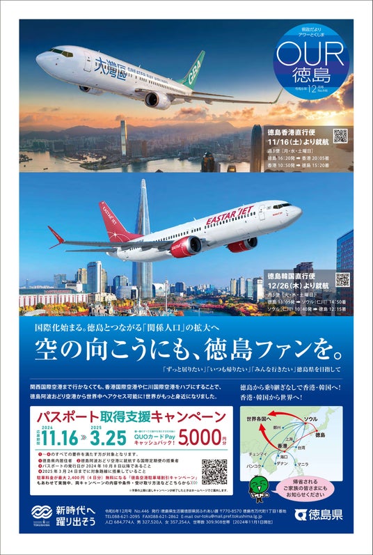12月号では、徳島阿波おどり空港「国際定期便就航」や、「関係人口」拡大の取り組み、「生活支援ネットワーク」について掲載しています。是非ご覧ください。