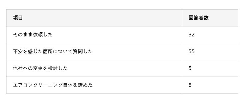 エアコンクリーニングの説明で不安を感じたあと、どのような行動を取りましたか?