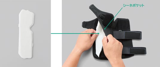 ▲患部にフィットする専用シーネを差し込むだけで簡単に装着可能