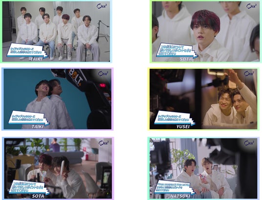 新WEBCMでは、FANTASTICSのメンバーが2名ずつペアで登場する合計4シーンを撮影し、メンバーらしさ溢れる動画になっています。演出は女性の手元だけを映すことで、FANTASTICSのメンバーがまるで自分を見つめて至近距離で語りかけてくるような特別感を楽しめます。FANTASTICSのメンバーがオーラツーのアイテムとともに、頑張る女性の一日に寄り添い、気分を盛り上げてくれます。