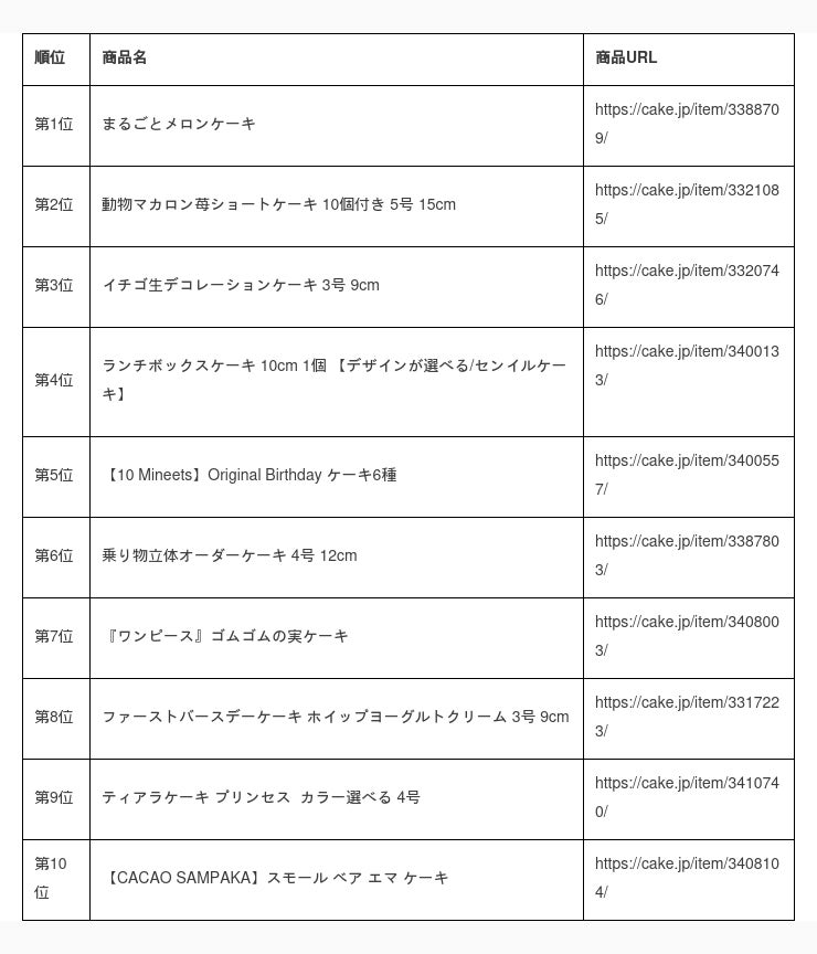 ケーキ・スイーツ専門通販サイト「Cake.jp(ケーキジェーピー)」を運営する株式会社Cake.jp(本社:東京都新宿区、代表取締役:高橋 優貴)は、誕生日ケーキの最新トレンドをご紹介する『Cake.jpトレンドランキング』を発表いたします。