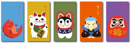 デザインは、5種類の動物型と、おめでたい和モチーフ型の2タイプ(全10柄)で、日販オリジナルポチ袋と組み合わせると、300通りから選ぶことができます。