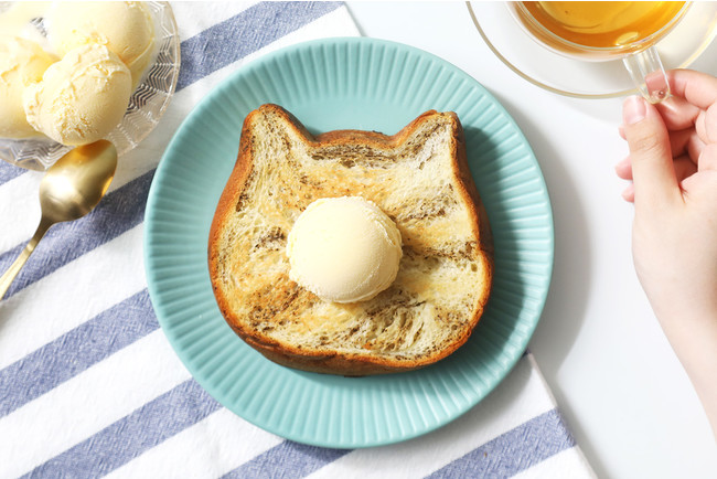 また、アールグレイと組み合わせることで、チーズのクリーミーさをお楽しみいただける味わいに。 ねこねこ食パンの特徴でもあるミルキーな味わいにチーズの風味が重なり、コクのあるねこねこ食パンをご賞味いただけます。 ひと口頬張ると、まるでミルクティー。 そのままでもおいしくお召し上がりいただけますが、トーストしてひんやりとしたアイスクリームを添えて、夏ならではのアレンジをお楽しみいただくのもおすすめです。