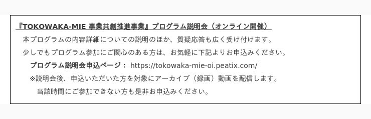 ■『TOKOWAKA-MIE事業共創推進事業』について