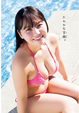 プールサイドでの眩しいピンクビキニ姿だけでなく、たわわなボディが映えるチューブトップ姿から、オトナっぽいブルーの水着まで。本人コメントにもあるとおり笑顔満点の柚巴ちゃんがてんこ盛りの12ページ!! スマイル満開の“王道ゆず”をご堪能あれ(ハート) 限定QUOカード応募者全員サービス企画も実施!!