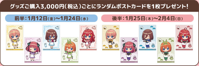 グッズご購入3,000円(税込)ごとにポストカード(全5種)をランダムで1枚プレゼント!