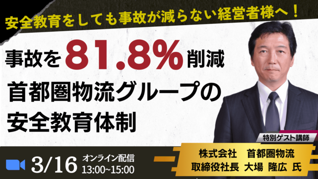 ロジスティクス・物流コンサルティングサービスを提供する船井総研ロジ株式会社(東京本社:東京都千代田区、代表:菅重宏、以下「船井総研ロジ」)は2023年3月16日(木)に物流会社・運送会社の経営者を対象とした「最先端事故防止セミナー」をオンラインで開催いたしました。