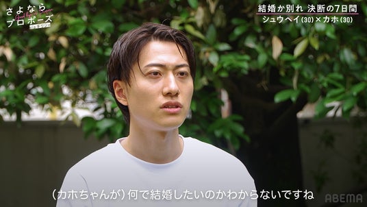 会社員で30歳のシュウヘイと、同い年でエステティシャンのカホは、交際歴約2年・同棲歴約2年で今年 1月に婚約。しかし今年6月の入籍予定は、シュウヘイの「結婚って今なのかな?」という思いから、入籍延期で未定の状態になっています。「籍を入れることに何の意味があるのか分からない」「責任と覚悟が消化しきれていない」という思いを抱えるシュウヘイと、「結婚とは別の方向に行こうとしているんじゃないか」という不安を抱えるカホもギリシャに出発。食事に出かけた際に、カホは「プロポーズに至るまでのシュウヘイくんの気持ちとか、それ以降の気持ちを知りたいと思っている」と打ち明け、さらに「シュウヘイくんの意見を聞いたら、一回飲み込むところがあるから私も思っていることを伝えたい」と決意を語りました。それを聞いたシュウヘイもこの旅について、「カホちゃんとも自分とも向き合う時間」「結婚って何?っていうところや、その答えを出す旅でもある」と思いを明かしました。