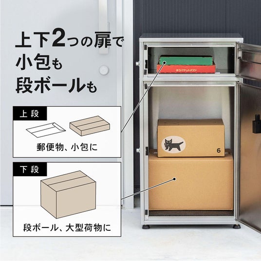 ポスト一体型の大容量設計:郵便物と宅配物を同時に受け取れる設計で、再配達の手間を軽減します。