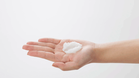 お手持ちのトリートメントを手に取り、手のひらでくぼみをつくります。