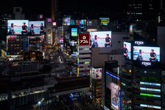 スペシャルムービーの一斉放映により、渋谷のスクランブル交差点はフェンディの華やかな世界観に包まれました。本動画はフェンディ公式オンラインfendi.comの特設サイトにてご覧いただけます。