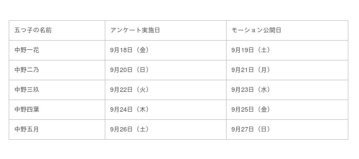 期間中、本タイトル公式Twitterアカウントで実施されるユーザーアンケートにより、五つ子の動く姿(モーション)を初公開。さらには、ストアカード1,500円分を36名様にプレゼントします。