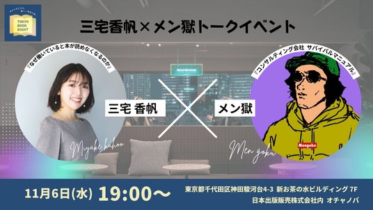 日本出版販売株式会社(代表取締役社長:奥村 景二、略称:日販)は、一般財団法人出版文化産業振興財団(略称:JPIC)が主催する「本との新しい出会い、はじまる」をスローガンに読書推進活動を出版業界が一丸となって進めるキャンペーン「BOOK MEETS NEXT 2024」の一環として、日販本社イベントスペース「オチャノバ」にて、文芸評論家の三宅香帆氏とコンサルタント・メン獄氏を招いたトークイベントを2024年11月6日(水)に開催します。