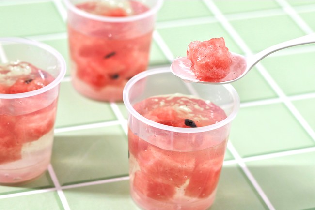 なめらか食感が人気のパステルのゼリーの夏季限定フレーバーとして、爽やかな夏の果実"スイカ"を使用した商品を販売いたします。子どもから大人まで大好きな夏の風物詩のスイカ。そんなスイカの甘くみずみずしい旨みをぎゅっと詰め込みました。シャキッとした旬のスイカと、のど越し良くなめらかなゼリーの食感の違いをお楽しみいただけるスイーツです。