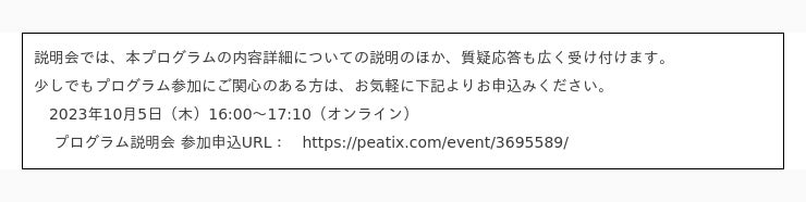 2023年10月5日 プログラム説明会(オンライン開催)