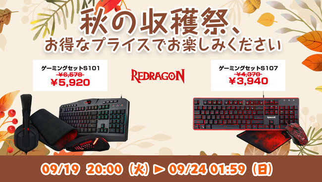 楽天市場「Show !t」は9月19日20:00~9月24日01:59まで開催される、楽天お買い物マラソン感謝祭に参加し、PCゲーム向けのREDRAGONウスやマウスパッド、ヘッドセット、キーボードなど、スターターセットを10%オフセール価格で販売します。ポイント10倍プレゼントのこの機会に、ゲーム用品を揃えて秋の夜長をゲームをして楽しみましょう。