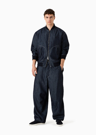 深いインディゴカラーにホワイトカラーのステッチが利いた、オーバーサイズのジップアップブルゾン。リブ部分とスリーブやスリーブの切り替え箇所、ポケットに配されたステッチがデザインアクセントになっています。