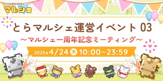 このたび「とらマルシェ」が2025年4月に 【1周年】 を迎えます。とらのあなWEBオンリーではそれを記念し、4月24日(木)より運営によるオールジャンルのお試しイベントの開催が決定しました。本イベントは「マルシェ機能」を使ってみたい方や興味があるけどまだ参加したことのない方向けの、会員登録無しで気軽にご参加いただけるお試しイベントです。期間中はサークル参加体験の他、”マルシェ機能紹介ツアー”、”ユーザーとWEBオンリー運営との交流タイム”などに加え、素材をGETできる”キーワードラリー”や”SNSキャンペーン”、WEBアンソロジーを使った”「とらマルシェ」1年の歩みの振り返り”や”とら図鑑”の展示など、様々な記念企画を実施予定です。