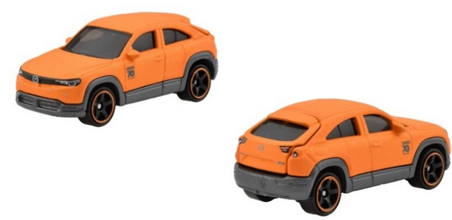 2021 マツダ EXは、マツダが誇るおしゃれクロスオーバーのMXです。車両の後端がかなり傾斜しているのが特徴的で、汚れたアウトドアグッズもそのまま積める、防水仕様の樹脂製トレイが再現されています。